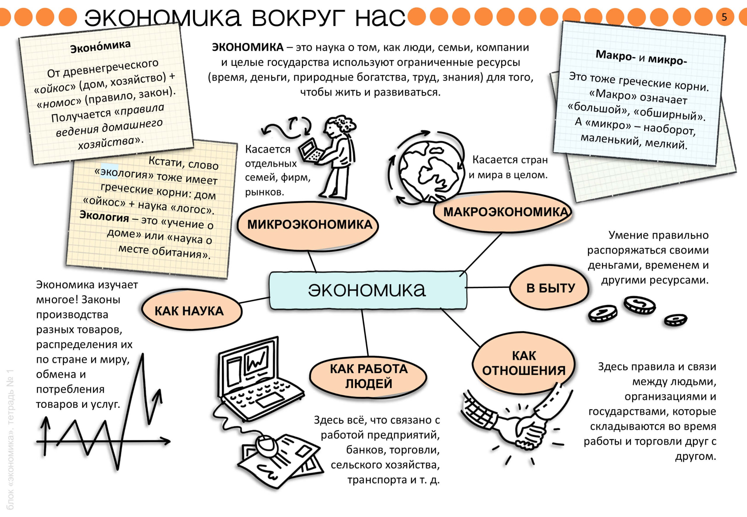Здесь мы переходим к теме бюджета. Сначала разбираем бюджет страны, а затем — семейный бюджет. После этого знакомимся с налогами и НДС.